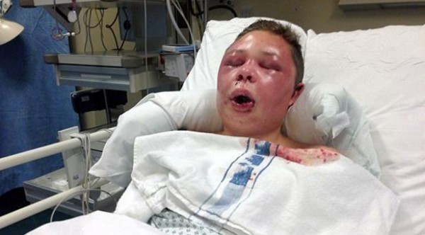 تعرض شاب للضرب المبرح عندما حاول أن يساعد رجلاً ملقى على الأرض وهو في طريق عودته إلى منزله ليلاً مما أدى إلى إصابات بالغة في كافة أنحاء جسمه.
