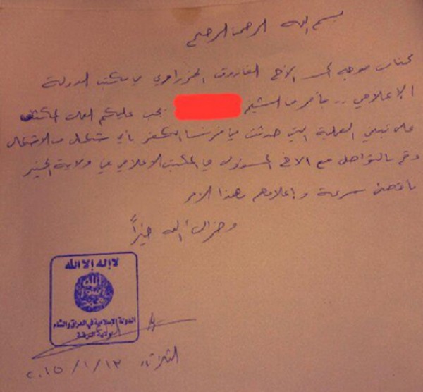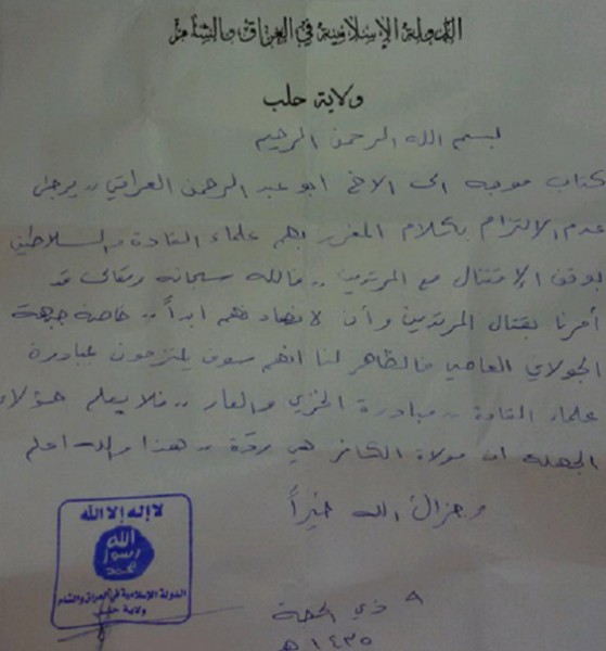 بالصور .."النصرة" تفضح رسائل سرية بين قيادات داعش