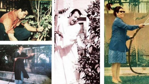 صور نادرة لفناني الزمن الجميل وهم يهتمون بحدائق منازلهم