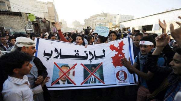 إلى ذلك، عمت مظاهرات ضخمة العاصمة صنعاء و6 مدن أخرى، لرفض الانقلاب الحوثي، واحتفاء بالذكرى الرابعة لثورة 11 فبراير التي أطاحت بالرئيس السابق علي عبدالله صالح عام 2011.