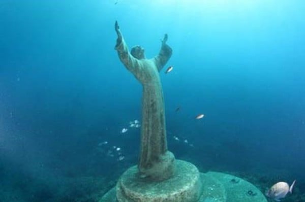 7- يقع تمثال المسيح الغارق على عمق 17 مترًا فى البحر الأبيض المتوسط، فى مدينة سان فراتوسو فى إيطاليا، وقد صُنع هذا التمثال من البرونز، ويبلغ طوله مترين ونصفا، وقد تم وضعه عام 1954 ، بالقرب من المكان الذى توفي فيه "داريو جونزاتي"، وهو أول إيطالي يستخد