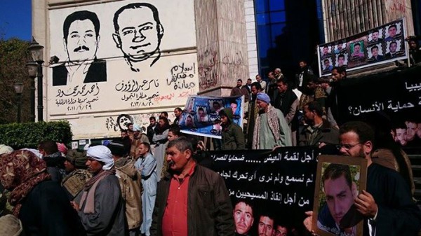 وأنهى أهالي الأقباط المختطفين في ليبيا أمس الجمعة اعتصامهم الذي كانوا قد بدأوه الخميس الماضي داخل ساحة الكاتدرائية المرقسية بالعباسية