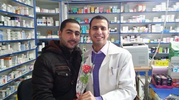 وأضاف فكرة الورد الأحمر في يوم عيد الحب تعبيرا عن المحبة التي تجمع زبائن الصيدلية مع الصيدلي .
