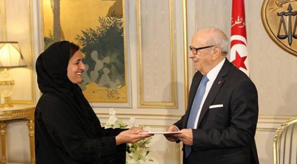 استقبل الرئيس التونسي الباجي قائد السبسي، وزيرة التنمية والتعاون الدولي، الشيخة لبنى بنت خالد القاسمي، مبعوثة أبوظبي إلى تونس، التي سلمت الرئيس السبسي، دعوة رسمية "لأداء زيارة أخوة وعمل" إلى الإمارات، وفق بيان رسمي صادر عن رئاسة الجمهورية نشرته وكالة الأنباء التونسية الرسمية.