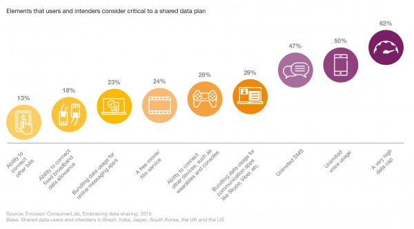 وقد جدت دراسة وحدة مختبرات إريكسون أن المستهلكين لديهم توقعات مختلفة ومتنوعة في ما يتعلق بباقات البيانات المشتركة، بما فيها:
