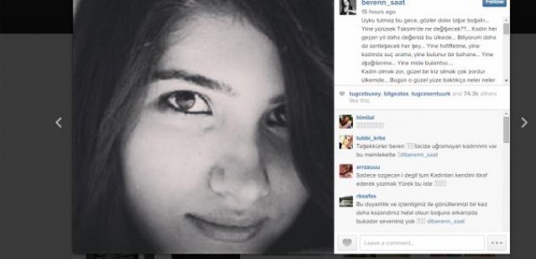 بيرين نشرت صورة للفتاة التي توفيت منذ أيام عدة، وذلك عبر حسابها الشخصي على موقع "إنستغرام"، وعلقت عليها برسالة وصفها الجمهور بالقاسية والجريئة، قالت فيها: "لم أستطع النوم هذه الليلة، أمشي مجدداً في ميدان "تقسيم" وأتساءل عما تغير، لكنني أكتشف أن النساء عاماً بعد عام يصبحن عديمات القيمة أكثر فأكثر في هذه البلاد، أعلم أنهم سيخففون من حدة الموقف مرة أخرى، مرة أخرى مزيد من الاستهتار، مرة أخرى مزيد من تحميل النساء الذنوب، مرة أخرى مزيد من الذل، مرة أخرى مزيد من الغثيان".