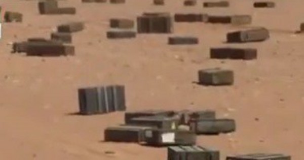 فيديو يكشف كمية كبيرة من الذخيرة ملقاة عبر الطائرات على الحدود مع ليبيا
