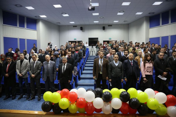 واستهل رئيس الإتحاد العام لطلبة فلسطين الطالب حاتم دوابشة كلمته بالترحيب بوفد منظمة التحرير الفلسطينية المكون من السيد علي أبو هلال مدير عام دائرة شؤون المغتربين، والسيد محمود الزبن رئيس قسم أوروبا في الدائرة ، وبالدكتور حسن عمجة نائب رئيس جامعة شرق البحر الأبيض المتوسط ، والعديد من الأكاديميين الفلسطينيين المحاضرين بالجامعة ، كما رحب بأهالي الطلبة القادمين من الوطن ومن بلدان المهجر والشتات ليشاركوا أولادهم هذه اللحظات الأجمل في حياة أبنائهم الطلبة وهم ينتقلون من حياتهم العلمية إلى العملية.
