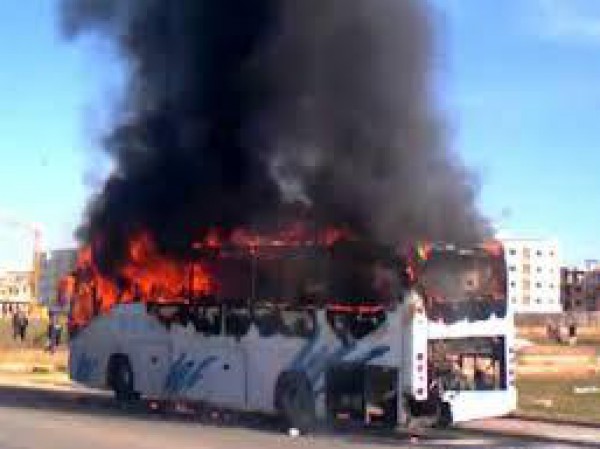 بسبب ماس كهربائي ..نجاة 50 معتمراً من حريق حافلة