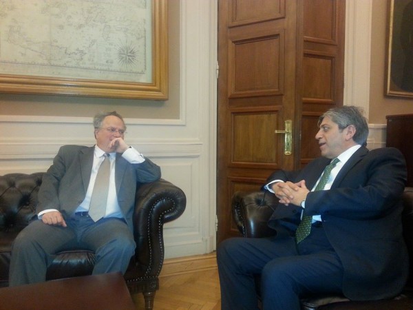 واستمع السفير طوباسي لإيجاز من وزير الخارجية اليوناني حول المفازضات الجارية بين اليونان و المجموعة الأوروبية حول تطورات الأوضاع الاقتصادية و مسعى الحكومة اليونانية الجديدة من اجل استقرار و ازدهار اليونان الصديق.