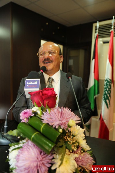 بدأ الاحتفال بالنشيدين اللبناني والفلسطيني ثم تلاه كلمة سفير دولة فلسطين في لبنان اشرف دبور جاء فيها : الاستراتيجية الفلسطينية لأنهاء الاحتلال قائمة على عدة اشكال نضالية منها تدويل القضية الفلسطينية لأنهاء الوضع القائم حيث ان الامور لا يمكن ان تستمر على ما هي علية وستشهد المرحلة النضالية التحررية اضافة الى الاساليب النضالية الأخرى تطوراً ايجابياً من خلال العمل الفلسطيني الوحدوري واضافة الى القرارات الجرئية للقيادة الفلسطينية التي اتخذها الرئيس ابومازن بالتوجه الى الامم المتحدة وانتزاع الاعتراف الدولي بدولة فلسطين وكذلك توالي الاعترافات وتثبيت فلسطين دولة على خارطة العالم.