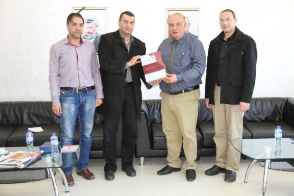 وخلال الزيارة التقى وفد المؤسسة في "دار الرئاسة" رئيس الجامعة الاستاذ الدكتور محمود ابو مويس ومدير دائرة العلاقات العامة الأستاذ فتحي العمور،وفي مستهل الجلسة قدم رئيس المؤسسة المحامي محمد صبحي نبذة تعريفية عن المؤسسة ومجال عملها والشؤون التي تعنى بها على صعيد المقدسات الفلسطينية ، وبعد ذلك تطرق الى موسوعة المقدسات وشرح قيمتها والجوانب التي عالجتها من خلال مشروع المسح الشامل لكل المقدسات الإسلامية والمسيحية من قيساريا حتى رأس الناقورة وعلى مدار 13 عاما .