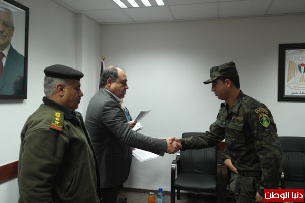 كرم محافظ جنين اللواء إبراهيم رمضان ،اليوم ، ثلاثة عشر عنصرا من عناصر الأمن الوطني ، تقديرا لجهودهم الخاصة في التطوع لتقديم خدمات للمجتمع المحلي ، وممن شاركوا في إتلاف الطيور النافقة في المزرعة التي أصيبت في أنفلونزا الطيور في محافظة جنين مؤخراً.