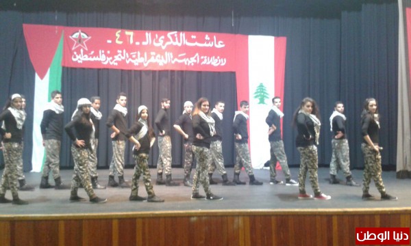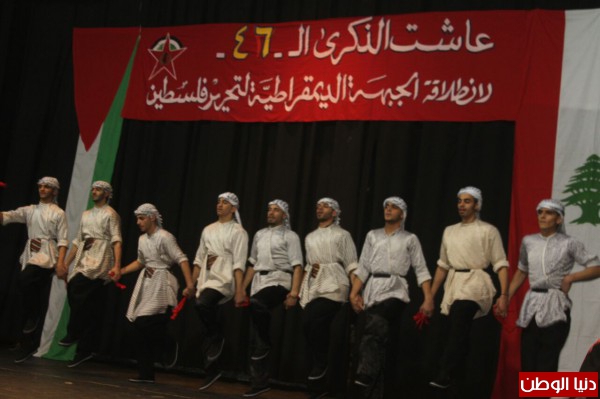 احيت الجبهة الديمقراطية لتحرير فلسطين الذكرى (46) لانطلاقتها بمهرجان سياسي حاشد (مهرجان الوحدة والحرية) اقامته في قاعة معروف سعد في مدينة صيدا جنوبي لبنان بحضور عدد من ممثلي الاحزاب اللبنانية والفصائل الفلسطينية، الوطنية والاسلامية، وحشد من ممثلي الهيئات والاتحادات واللجان الشعبية ومؤسسات اهلية ومنظمات شبابية ونسائية اضافة الى اعضاء مجالس بلدية واختيارية في منطقة صيدا وضواحيها وفعاليات وطنية من مخيمات صيدا وجوارها.