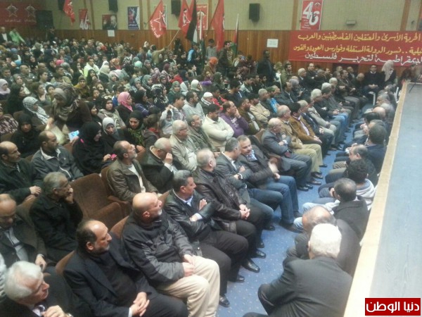 واستعرض فيصل الاوضاع الفلسطينية العامة معتبرا ان الحالة الفلسطينية برمتها مطالبة باعادة النظر بكل آليات العمل الوطني سواء على المستوى الداخلي لجهة ايجاد الارضية السليمة لبناء نظام سياسي جديد قائم على انتخابات تطال كل مؤسساتنا الوطنية بنظام التمثيل النسبي الكامل، وعلى المستوى الخارجي باعادة النظر بالعلاقة مع الادارة الامريكية واسرائيل. مشددا على ان الاولوية اليوم هي لتدعيم صمود المواطن الفلسطيني ووضع حد لعملية المفاوضات التي لم يستفيد منها الا العدو على مدار اكثر من ربع قرن بتزايد عمليات الاستيطان والاعتقال والتهويد ما يتطلب قرارا جريئا يعزز الوحدة الوطنية الداخلية ويراكم على ما يتحقق من انجازات داخليا وخارجيا.