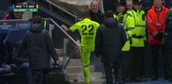 اعترض ظهير أيمن برشلونة الإسباني، داني ألفيش، على تغييره خلال مباراة مانشستر سيتي بطريقة غريبة، ضمن ذهاب ثمن نهائي دوري أبطال أوروبا، التي أنتهت بفوز برشلونة بهدفين مقابل هدف.
