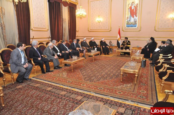 قدم وفد فلسطيني من أعضاء مجلس أمناء مؤسسة ياسر عرفات واجب العزاء لقداسة البابا تواضروس الثاني بابا الأسكندرية وبطريرك الكنيسة المرقسية ، اليوم ، بعد قتل 21 مواطنا مصريا ذبحا على يد تنظيم داعش الإرهابي في ليبيا مؤخراً، وذلك في المقر البابوي بالكاتدرائية المرقسية