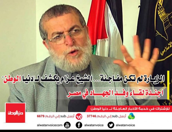 الزيارة لم تكن مفاجئة… الشيخ عزام يكشف لـ"دنيا الوطن" اجندة لقاء وفد الجهاد في مصر