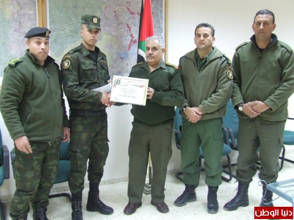 قائد منطقة جنين وطوباس يكرم احد منتسبي قوات الأمن الوطني الفلسطيني لتسليمه مبلغ مفقود