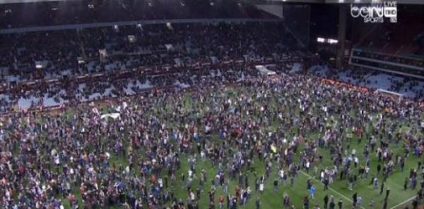 وشهدت المباراة قبل نهايتها بدقائق نزول مشجعي أستون فيلا من المدرجات واقتحامهم الملعب ولكن أفراد الأمن أخلوا أرضية الملعب لاستئناف المباراة فما انطلقت احتفالات المشجعين بعد صفارة نهاية اللقاء.