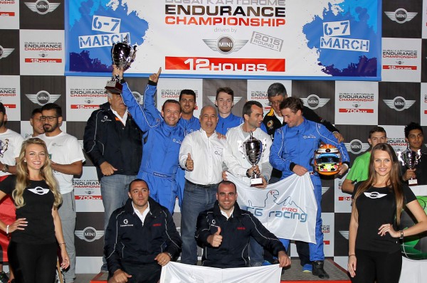حقق فريق "سي. جي. راسينغ برو" الفوز على مجموعة من الفرق القوية متخطياً ظروف السباق الصعبة ليظفر بلقب "دبي كارتدروم 12 ساعة"، الجولة الأولى من بطولة التحمل 2015 بدعم من "ميني" وذلك يوم الجمعة (6 مارس 2015)، فيما فاز فريق "سي. جي. راسينغ 2" في فئة "الشركات"، وانتزع فريق "ميني دبي" المركز الأول في فئة "كأس الأمم".