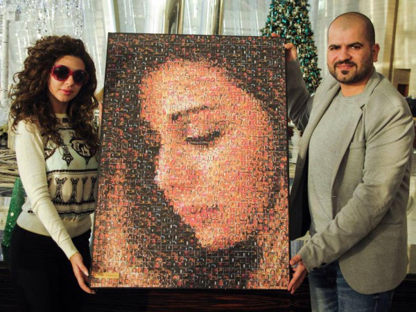 الفنان غياث محمود يستخدم 1750 صورة صغيرة لتشكيل لوحة فسيفساء كبيرة للنجمة اللبنانية ميريام فارس