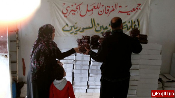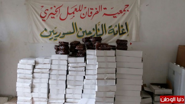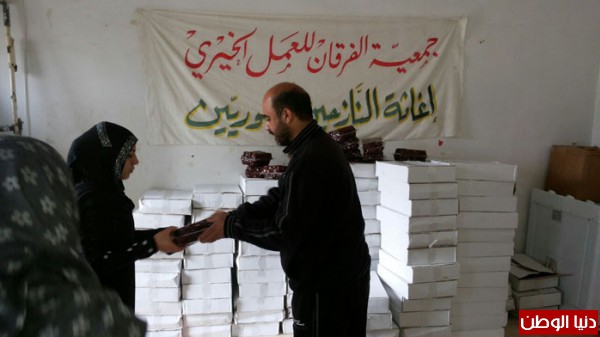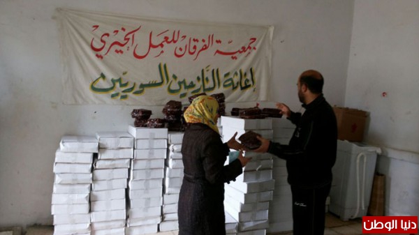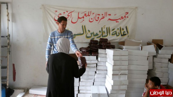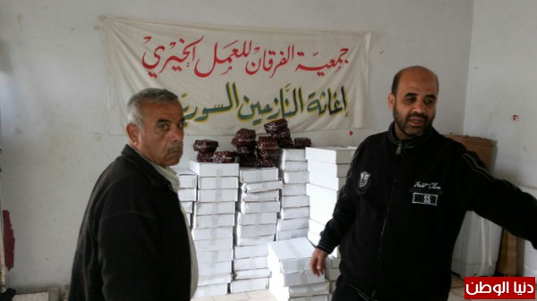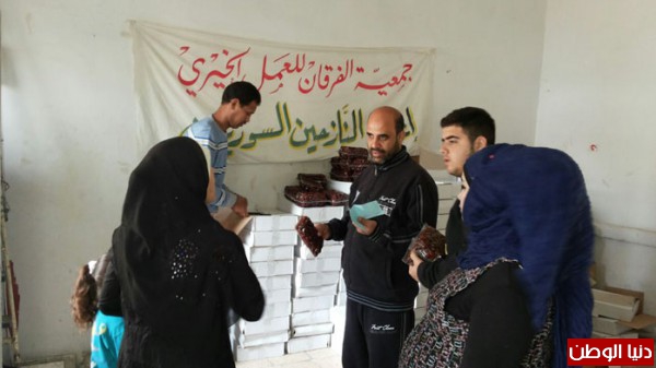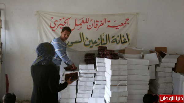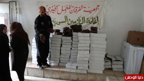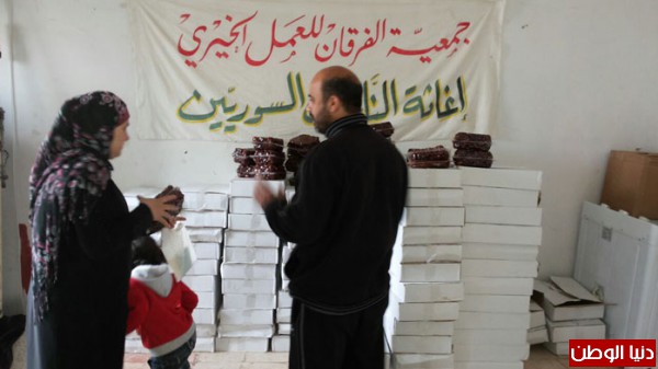 بتمويل من اهل الخير والاحسان جمعية الفرقان للعمل الخيري وبالتعاون مع اللجان في مخيم عين الحلوة قامت بتوزيع شحنة من التمورمحققة صورة مشرقة ورائعة من البذل والعطاء السخي تجسدت بـتوزيع (11 طن) من التمور مستهدفة (11000) أســرة ارتسمت من خلالها فرحة غامرة على شفاه الأيتام والفقراء والمحتاجين والنازحين من سوريا.