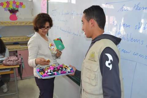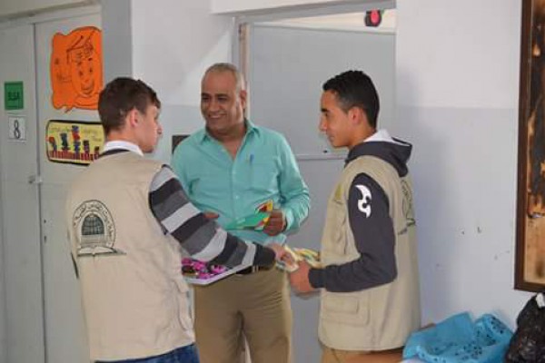 وقد شارك في التكريم طلاب وكوادر الرابطة في جميع المانطق حيث قاموا بتوزيع الحلوى وتقديم كرت معايدة للمعلمين والمعلمات.
