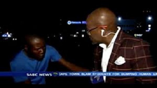 ويظهر التسجيل المصور - الذي بث على الإنترنت - الرجلين وهما يحومان حول المراسل فويو مفوكو أثناء تحدثه أمام الكاميرا قبل اندلاع شجار ثم صراخ مفوكو قائلاً "النجدة .. نحن نتعرض للسرقة".