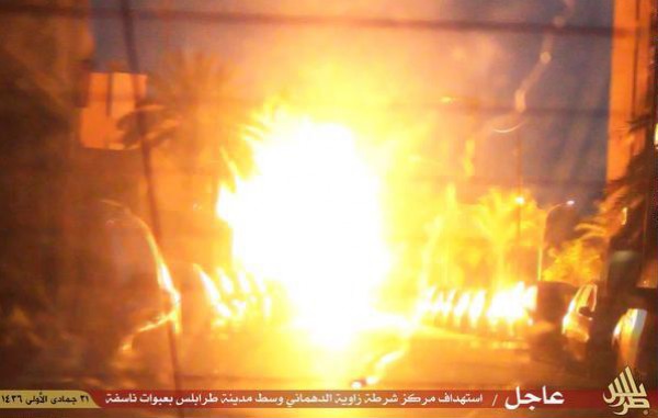 بالصور ..داعش يتبنى تفجير مركز شرطة بالعاصمة الليبية