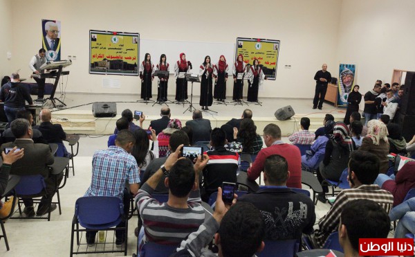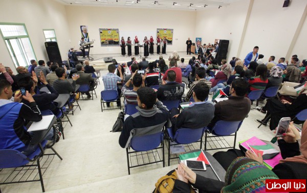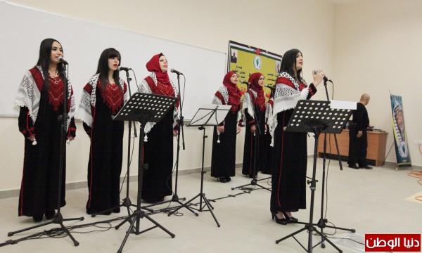 وغنت فرقة حرائر القدس مجموعة من الاغاني الوطنية القديمة حيث تفاعل طلبة الجامعة مع أجمل الالحان وأعذب الكلمات.