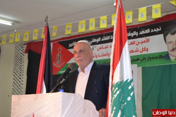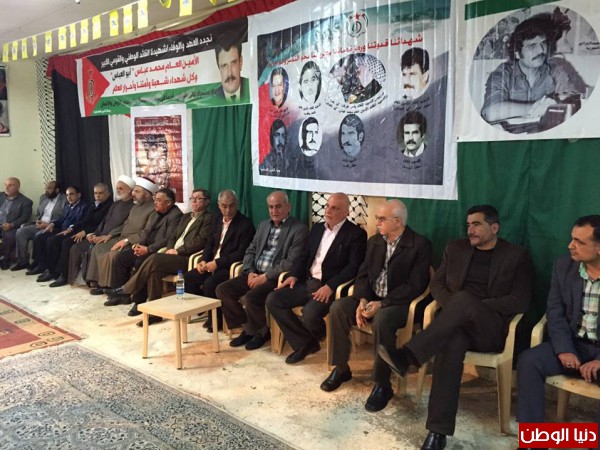 والقى كلمة منظمة التحرير الفلسطينية الحاج رفعت شناعة امين سر اقليم لبنان لحركة فتح قال فيها في حضرة الشهيد القائد الكبيرابو العباس نتوقف مع فصيل رئيس من فصائل "م.ت.ف"، وتنظيماً سياسياً مقاتلاً على أرض فلسطين، قدّم هذا الفصيل خيرة قيادته شهداء من أجل فلسطين، فكانت للشهيد القائد الامين العام ابو العباس وقيادة الجبهة برامجهم الوطنية والسياسية والنضالية وفي كل مرحلة كانوا سبّاقين للتعبير عن واقع الشعب الفلسطيني فقدّموا شهداء من قادة ومناضلين، وأدهشوا العالم بعملياتهم العسكرية ، ونحيي كوكبة من الشهداء الفلسطينيين واللبنانيين وفي مقدمتهم الرئيس الرمز ياسر عرفات ومحمد سعد وعباس الموسوي الذين كتبوا صفحات ناصعة من العزة ونستقي منها كل مقومات الصمود ايمانا بالنصر والتحرير ، واضاف جئنا اليوم لنعبر عن وفائنا للشهداء وهذه قمة الوفاء ، وقال نجتمع اليوم لنعبر عن وفائنا لشهدائنا متمسكين بالعقيدة الإيمانية والوطنية ، وأن نبقي البوصلة نحو فلسطين في خدمة القضية الفلسطينية والثوابت الفلسطينية ، وشدد على ضرورة تعزيز العلاقة اللبنانية الفلسطينية والقرار الفلسطيني الذي يجب ان يكون في خدمة الثورة والشعب والحفاظ على منظمة التحرير الفلسطينية باعتبارها البيت الفلسطيني للجميع واشاد بقرار المجلس المركزي بوقف التنسيق الامني ، ودعا الى سياسة حاضنة للمقاومة مؤكدا على ان وثيقة الوفاق الوطني هي الاساس والاسراع في اجراء الانتخبات الرئاسية والتشريعيه التي مضى عليها تسعة سنوات من اجل مواصلة النضال حتى ازالة الاحتلال عن ارضنا واقامة الدولة الفلسطينية المستقلة وعاصمتها القدس .