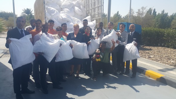 وقام فريق عمل من الجانبين يضم مسؤولين من الإدارة والموظفين بتنظيم ونقل التبرعات التي وصلت 18 شحنة من الملابس التي سيتم توزيعها من خلال جمعية الهلال الأحمر الاماراتي في أبوظبي الي المحتاجين في مناطق مختلفة من العالم .