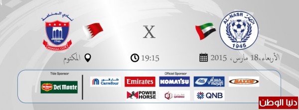 رياضة فريق النصر الاماراتي بطل النسخة السابقة يستضيف المنامة البحريني في الامارات العربية المتحدة 2015-03-17 رابط مختصر: تابعنا أيضا عبر تويتر @alwatanvoice رام الله - دنيا الوطن