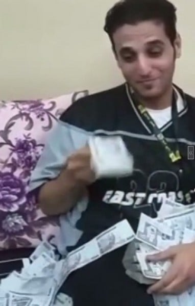 وبحسب موقع “عاجل” يظهر الشاب وهو يحمل مبلغا ماليا ضخمًا، لكنه أخذ يأتي بتصرفات غريبة باستخدام المال في مسح جسمه من العرق ثم داسه بقدميه، مما أغضب رواد مواقع التواصل، وطالبوا بالتعرف على صاحب هذا المال، وإنزال أقصى عقوبة ممكنة عليه لإهانته عملة دولته.