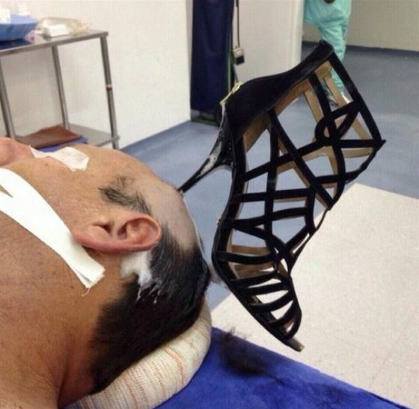 دخل أحد المواطنين السعوديين غرفة الطوارئ بأحد مستشفيات “الجبيل” وهو مصاب بإصابة غريبة من نوعها، إذ استقر نعل حذاء سيدة في رأسه.