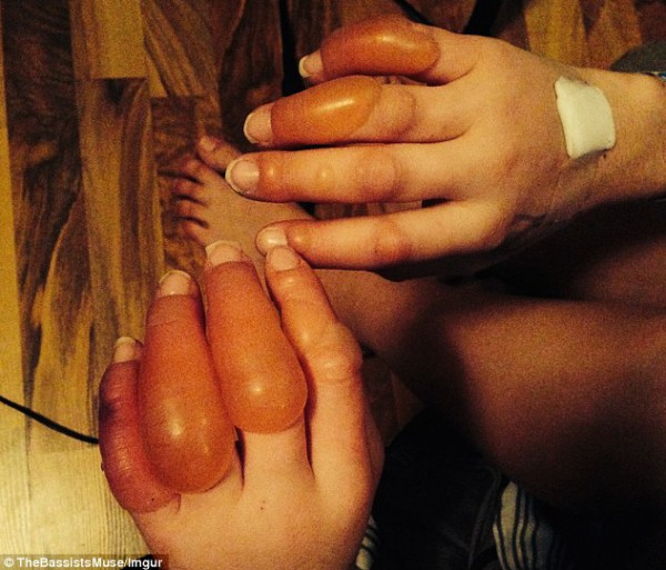 ونشرت الفتاة صورا لأصابعها التي تجمدت بسبب الصقيع وقالت أنها كانت في الحانة تشرب وتمارس الجنس بشكل كبير إلى أن اغمي عليها خارج الحانة في طريقها للبيت في كندا.