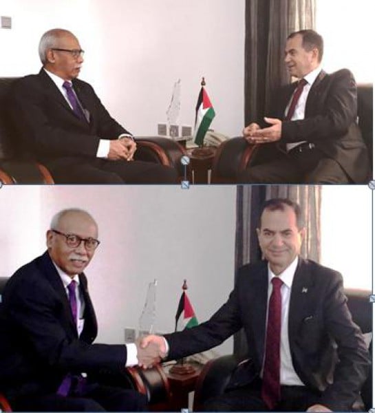 سفير اندونيسيا الجديد لدى نيجيريا السيد " HARRY PURWANTO " يزور سفير دولة فلسطين - عميد السلك الدبلوماسي العربي والآسيوي في نيجيريا " د . منتصر أبو زيد ", وذلك في مقر سفارة دولة فلسطين , في أبوجا . تمت هذه الزيارة صباح هذا اليوم الثلاثاء 17-03-2015 م بعد أن قدم السفير الأندونيسي أوراق اعتماده الى الرئيس النيجيري , حيث رحب السفير أبو زيد بضيفه الأندونيسي , وشكره على هذه اللفته الكريمة التي تدل على مدى عمق الصداقة الفلسطينية - الأندونيسية , وشكر سفير فلسطين نظيره الأندونيسي اندونيسيا رئيسا وحكومة وشعبا على المواقف المبدئية الثابتة تجاه القضية الفلسطينية والدعم المتواصل للشعب الفلسطيني بكافة المجالات , كما أكد السفير الأندونيسي بأن اندونيسيا تعتبر القضية الفلسطينية هي قضية اندونيسيا والعالم الأسلامي وستستمر اندونيسيا بمواقفها الثابتة والداعمة بكافة المنابر الدولية حتى ينال الشعب الفلسطيني حقه في تقرير مصيره واقامة دولته الفلسطينية المستقلة وعاصمتها القدس الشريف على حدود الرابع من حزيران - عام 1967 م , كما اتفق السفيرين على ضرورة التواصل والتنسيق والتعاون المشترك من خلال المجموعة الآسيوية والعلاقات الثنائية لخدمة مصالح الشعبين والبلدين .