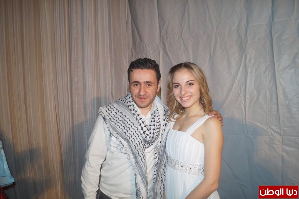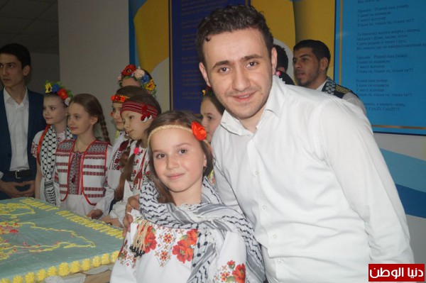 أبو سمرة امتشق كوفية وزي تراثي خالص مع عدد من الطلاب امام جميلات من أوكرانيا او ما يقال عنها "بلد المليون وردة"، من خلال العروض الفلسطينية الشعبية.