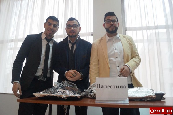 ولكن لم يكن العرض فلكوريا فقط بل وصل الى صنع اطباق طعام فلسطينية مثل (المقلوبة)،(المجدرة)، واطعمه اخرى قام بعملها الطلاب الذكور والتي استهلكت بسرعة كبيرة اثناء عرضها من قبل الوفود الاخرى والزوار في المدينة الاوكرانية السياحية".
