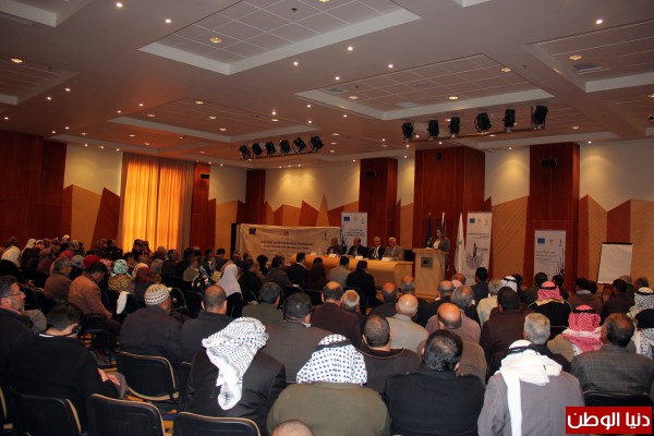 الى ذلك قدم مدير عام "العمل الزراعي" خالد الهدمي مداخلة حول المشروع، أشار فيها الى أن المشروع يستهدف 20 موقعا تمتد من الجنوب الشرقي من محافظة بيت لحم الى شمال محافظة الخليل، يستفيد منه 4915 مزارعا، بالإضافة الى 10 تعاونيات ومجموعات زراعية وقاعدية، مبينا أن الهدف العام من المشروع تحسين فرص المزارعين والمهمشين الذين يعيشون في المنحدرات الشرقية من الضفة الغربية للوصول الى الوارد الزراعية عبر تطوير الأراضي والمياه وتنمية الموارد البشرية، بالإضافة الى تمكين دور المرأة، مشيرا الى أن المشروع ينفذه بتمويل من الاتحاد الأوروبي وبالشراكة مع مركز أبحاث الأراضي ومجموعة الهيدرولوجيين الفلسطينيين ومركز بيسان للدراسات والبحوث والمجموعة الطوعية الايطالية بالتعاون مع وزارة الزراعة.