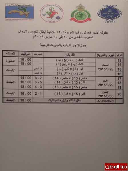 صدور نتائج الاجتماع الفنى للبطولة العربية بأغادير