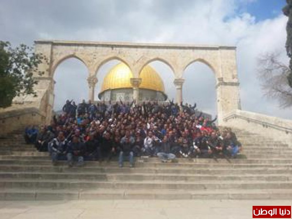 وأدى المشاركون في المسيرة صلاة الظهر جماعة واختتموا الفعالية بصورة جماعية على خلفية قبة الصخرة المشرفة.