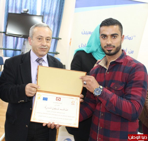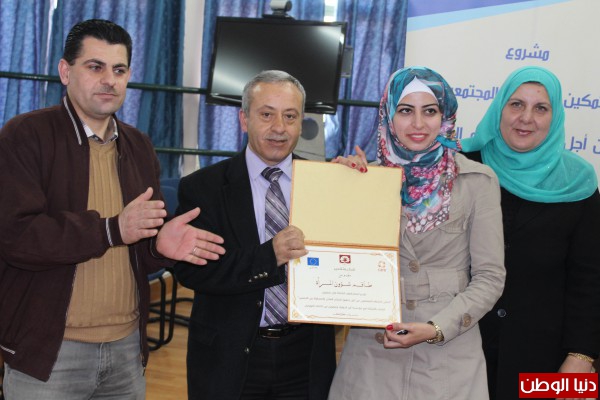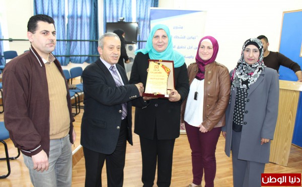 وفي نهاية اللقاء، كرم طاقم شؤون المرأة كلا من، نائب رئيس الجامعة للشؤون المجتمعية الدكتور نظام ذياب، وطلبة القسم المشاركين في المشروع.