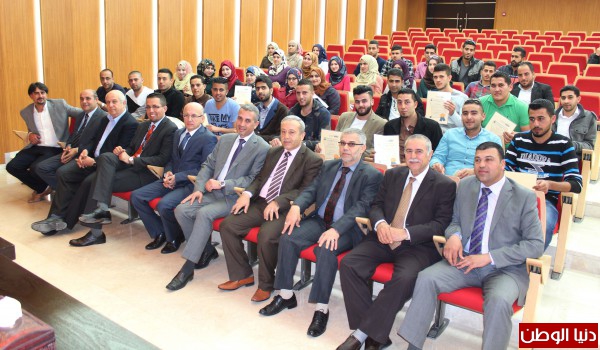 وافتتح الحفل، نائب رئيس الجامعة للشؤون المجتمعية الدكتور ذياب بكلمة رحب فيها بالحضور، ونقل تحيات رئيس الجامعة الأستاذ الدكتور محمود أبو مويس، وأشار إلى أن الجامعة تسعى دائما إلى تنمية مهارات الطلبة من خلال إشراكهم في الدورات التدريبية بالتعاون مع المؤسسات الفلسطينية في القطاعين الحكومي والخاص، ليكونوا قادرين على الانخراط في سوق العمل على الصعيد المحلي والعالمي، موضحا، أن الجامعة ترتكز في تقدمها وتطورها على ركائز ثلاث هي، تميز الجانب الأكاديمي وتشجيع البحث العلمي، وخدمة المجتمع المحلي.