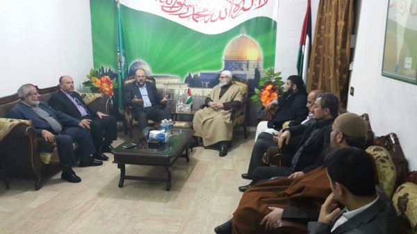 استقبل ممثل حركة المُقاومة الإسلامية – حماس في لبنان الأخ علي بركة في مكتبه بحارة حريك وفداً من القوى الإسلامية في مخيم عين الحلوة برئاسة الشيخ جمال خطاب أمين سر القوى الإسلامية، يرافقه كل من الشيخ أبو طارق السعدي والشيخ أبو شريف عقل والأخ أبو سليمان السعدي من قيادة عصبة الأنصار الإسلامية، والأخوين أبو محمد عيسى وأبو حسن النصر من الحركة الإسلامية المجاهدة.