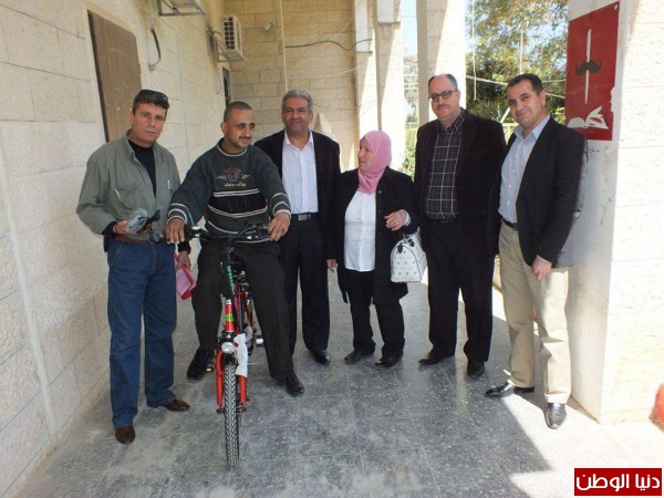 سلمت مسؤولة ملف المساعدات الإنسانية في مكتب الرئيس اللواء رائدة الفارس في مقر بلدية جنين مساعدة فخامة الرئيس محمود عباس لذوي الاحتياجات الخاصة "دراجة كهربائية"للموظف احمد محمود فايد والذي يعمل في بلدية جنين لمساعدته على التنقل.