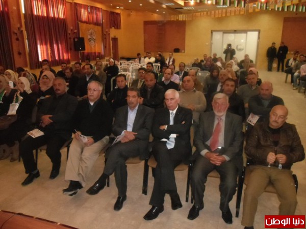 وفي كلمة عضو اللجنة المركزية اللواء توفيق الطيراوي : تحدث بان هناك أخطار تتهددنا وتحدق في منظمة التحرير الفلسطينية وبحركتنا الرائدة ، وأولها الاحتلال الإسرائيلي وهناك العديد من القضايا وسيما ما يتعلق بالجانب السياسي وبأن هناك مئات القرارات الأممية ولكن إسرائيل لم تنفذ أي شيء من هذه الوعود ،وبأن إسرائيل مدعومة من أمريكا ومن بعض الدول الأوروبية ،وبأن الضغط منهم دائماً علينا نحن لا عليهم ، وهناك أيضا خطر الانقسام ، ولن ينتهي الانقسام ؛ لأن البرنامج الأممي يختلف عن البرنامج الوطني ، وكل ما يجري هو إدارة الانقسام لا إنهاءه ، ومضيفاً : بأننا نحن نطرح البرنامج والمشروع الوطني ، ولكن هناك من يطرح خلاف ذلك ؛ وبأن ما طرح بالأمس هو يصب في إطار الدولة المؤقتة وذات الحدود المؤقتة ،ومضيفا: بأننا نعمل كشركاء مع كافة فصائل منظمة التحرير الفلسطينية ، ولكن لن نقبل أي برنامج سيعمل على إنهاء منظمة التحرير ، وعليه طالب بأن لا يتطاول أحد على حركة فتح ،وقدم تحياته للخليل ولأقاليمها وشاكراً للجميع إنجاحهم الانتخابات للقوائم الوطنية ، وفي ختام كلمته طالب الجميع بالالتزام بالحركة وقراراتها ،وبالانضباط ،وأن تحمل الكوادر المسؤوليات كما القيادة ، وحتى نعيد حركة فتح القوية والتي أنشأها و سلمنا إياها العمالقة الذين أسسوها.