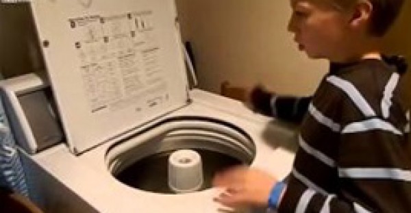 طفل مدهش يجعل من الغسالة آلة موسيقية