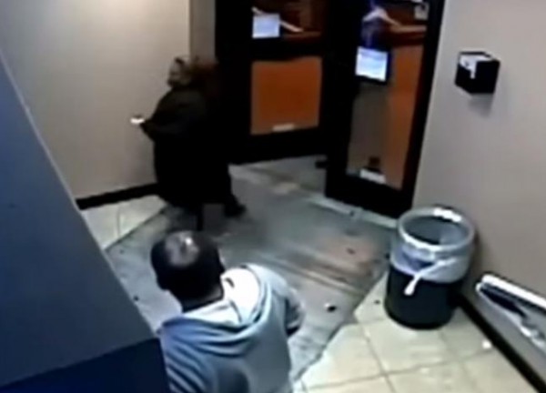 لحظة سرقة إمرأة بالقوة أمام صراف آلي